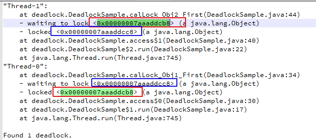 两个线程执行过程中,需要对两个对象进行加锁,且加锁的顺序不一致,导致了死锁的产生,简单的修复方法是:对两个对象的加锁顺序一致。
